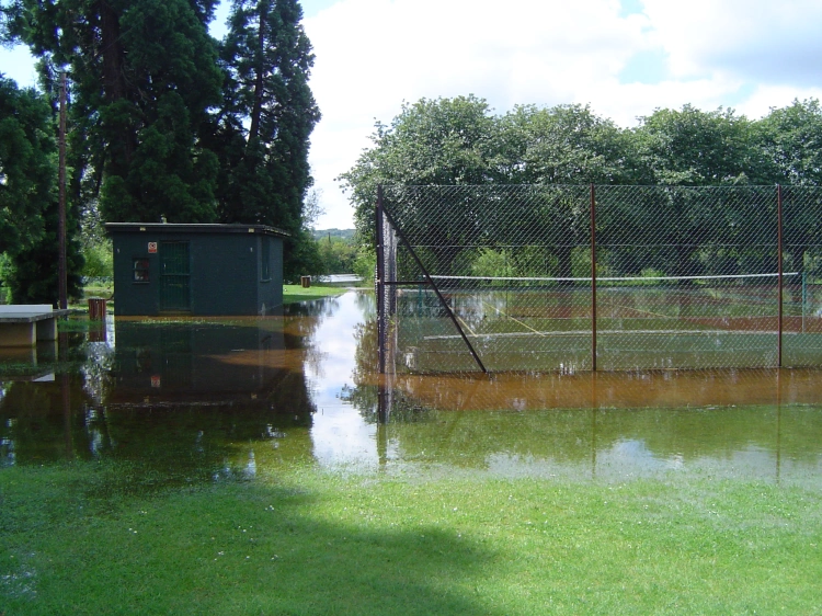 Water flows from Eastwick Ditch to Hinksey lake across tennis courts